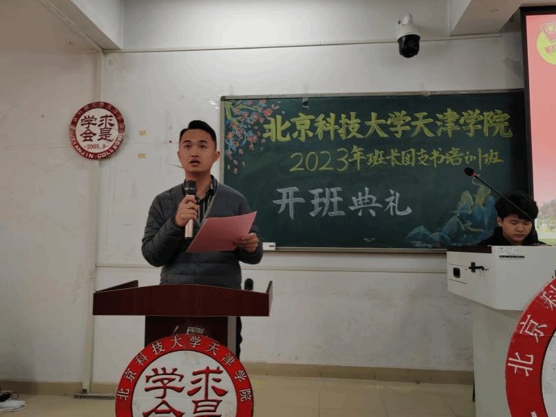 12月8日15:00北京科技大學天津學院2023年班長團支書培訓班開班典禮在8教201舉行。團委班子成員,各部部長、二級院系分團委書記以及230余名2023級新任班長、團支書參加典禮。