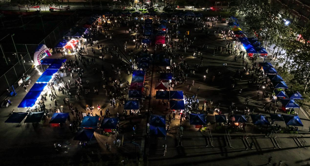夜幕降臨,招新現場依舊熙熙攘攘,光亮的燈帶閃耀到每位同學的心中。