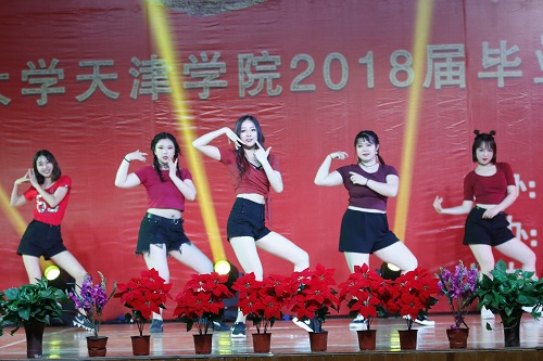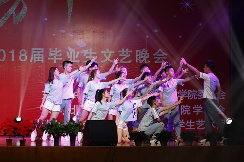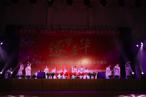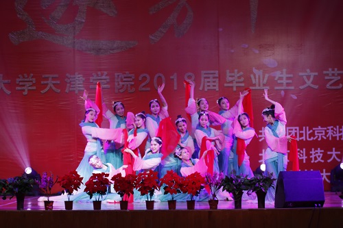 學校藝術團合唱團帶來的小合唱《One More Time》以歡快的旋律,動感的節奏展示出電子音樂獨一無二的魅力。經濟學院帶來的群舞《濃情淡如你》衣袂飄飄,韻味十足,使觀眾感受清淡的歡愉。隨后,由城市建設學院,材料系,經濟學院、管理學院帶來的舞蹈串燒展示出同學們的青春與活力并將晚會推向高潮。緊接著一個詮釋青年人夢想與擔當的微視頻拉開了第二篇章的序幕。機械系和藝術系帶來的原創歌曲《高山》,詞曲如山間清泉輕叩人心,勉勵青年人要不懼困難險阻,永攀人生高峰。法律系的現代舞《煢煢孑立,季憶留夏》,訴說著畢業生們對青春的懷念。經濟學院帶來的歌曲《自始無終》,演繹出了畢業生們對在母校學習生活期間美好回憶的眷戀和對未來生活的展望和期待。管理學院古典舞《灼灼芳華》伴著幽幽旋律將曼妙舞姿綻放眼前。學生藝術團舞蹈團帶來的傣族舞蹈《甘露》柔美輕盈的步伐猶如精靈般靈動,在舞美的烘托下婀娜搖曳的舞影展示了民族文化的獨特魅力,令現場觀眾陶醉不已。晚會最后畢業班輔導員們送上了特別節目《一生有你》,表達出母校、老師對畢業生的深切祝福和美好期許,至此“逐夢芳華”北京科技大學天津學院2018屆畢業生文藝晚會圓滿落下帷幕。