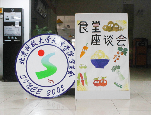 最后,食堂經(jīng)理及工作人員和老師在橫幅上簽字并合影留念。食堂座談會最終圓滿結束。飲食是在校生活中很重要的一部分,后勤方面的有效監(jiān)管、食堂方面積極的態(tài)度和學生方面有效的監(jiān)督,讓我們看到一個優(yōu)于以往的發(fā)展趨勢。食堂座談會不僅充分反映了同學們的意見及態(tài)度,同時也讓同學們更加理解食堂工作人員的工作。院學生會常代委員會將繼續(xù)探索新的工作方式,為后勤、食堂和學生之間做好樞紐工作,為學院創(chuàng)造更加和諧的校園就餐環(huán)境。