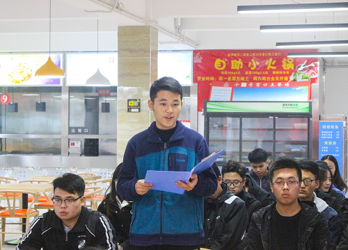 活動開始由主持人為大家作前期工作匯報,就前期檢查食堂的工作流程和檢查過程中發(fā)現(xiàn)的問題以及同學們線上線下調(diào)查問卷的反饋進行一一匯報。由周光宇同學代表廣大同學對食堂提出了關于衛(wèi)生,食品和工作人員的服務三方面的建議。這些建議和看法來源于廣大同學線上線下調(diào)查問卷的匯總,有效的向食堂方面?zhèn)鬟_了同學們的心聲。