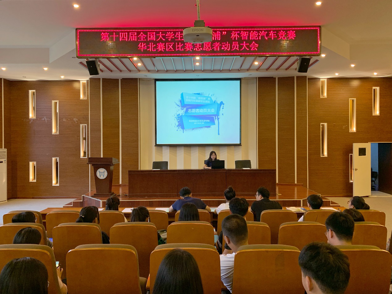 6月24日18:00,第十四屆全國大學生“恩智浦”杯智能汽車競賽華北賽區(qū)比賽志愿者動員大會在理工圖書館學術報告廳隆重召開。團委書記殷實,副書記李洋、何歡歡、李光及200名志愿服務師生參加此次動員大會。