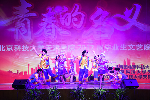 本次晚會(huì)分為“展青春風(fēng)采”,“奏未來華章”兩個(gè)篇章。晚會(huì)在學(xué)生藝術(shù)團(tuán)管樂團(tuán)、民樂團(tuán)帶來的《黃河大合唱》、《大宅門》中正式拉開序幕,藝術(shù)系帶來的一曲歌伴舞《涼涼》點(diǎn)燃了觀眾們的熱情,管理系古典舞《洛水佼人》溫婉婀娜,嫵媚多姿,材料系馬善智同學(xué)帶來的一首《相思成語(yǔ)》讓我們領(lǐng)略了一番傳統(tǒng)文化的沉淀之美。由學(xué)生舞蹈團(tuán)帶來的傣族舞《喜水》又向我們展現(xiàn)了民族文化的獨(dú)特魅力。小合唱《Rather Be》也凸顯了同學(xué)們的青春與活力,隨后由信息系,機(jī)械系,外語(yǔ)系,法律系聯(lián)合表演的舞蹈串燒將全場(chǎng)的氛圍推向了高潮,贏得了觀眾的陣陣喝彩。隨后,一個(gè)充滿回憶與溫暖的致2017屆畢業(yè)生微視頻拉開了晚會(huì)第二篇章的序幕。材料系帶來了一支富有特色的竹竿舞《恰同學(xué)少年》,土木系帶來了一支充滿活力的街舞《boys and girls》又一次為晚會(huì)帶來了一個(gè)小高潮。隨后廣播站帶來的詩(shī)朗誦《青春的詩(shī)》勾起了絲絲縷縷的校園青春的回憶。而獨(dú)唱《愛得太遲》也增添了一絲對(duì)校園生活的不舍的傷感。隨著平緩悠揚(yáng)的蒙古舞《夢(mèng)中的額吉》,包含深情的歌曲串燒和帶著詩(shī)意的古典舞《且聽春雨》的相繼謝幕,晚會(huì)也逐漸接近尾聲,晚會(huì)在2017屆畢業(yè)班輔導(dǎo)員《干杯》的歌聲中落下帷幕,輔導(dǎo)員們用不一樣的方式寄托了對(duì)每一位畢業(yè)生殷切的希望和美好的祝愿。