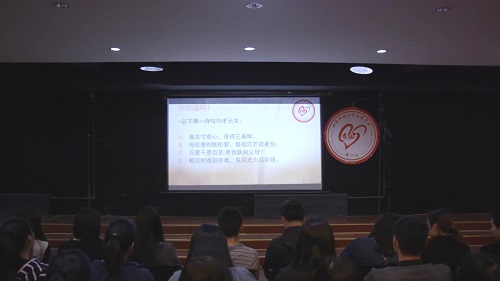 一段簡單的視頻“二十年后的父母”開場之后,視頻中的子女無法接受被化妝成二十年后年邁模樣的父母,許多同學內心也不禁一陣酸楚,隨后孝心社宣講員陳雨與大家分享了她對孝的理解。 “孝心,并非是長大后才有的責任,也并非是用金錢就能彌補”、“孝心其實很簡單,作為大三的我們將自己的畢業規劃與父母的期望結合起來是最值得父母欣慰的孝”、“勤學如奮起之苗,不見其長,而日有所長”好好學習是學生階段對父母盡孝的最好形式,樸實的話語道出了她對孝的點滴體會,也道出了同學們的心聲。法學1401班同學自己拍攝并制作的視頻記錄了他們對父母想說的話。隨后,主持人進行現場互動提問,“父母的喜好是什么?”、“你手機里有父母的照片嗎?”、“你多久給父母打一次電話?”,簡單的問題,讓很多同學陷入沉思,也使大家明白“行孝不能等”的道理。部分同學的父母在視頻中用書信表達了他們對于在遠方求學的同學們的掛念和祝福?;顒幼詈?,同學們將自己對父母想要說的話寫在留言板上,其中有同學寫道“我想我什么都可以沒有,但一定不可以失去你們,我愛你們,我一定會努力去實現自己的夢,我不會讓你們失望的”,也有同學寫道:“爸爸媽媽,其實我很愛你們,我希望能給你們帶來快樂,也為了變得強大給你們更好的生活而努力,也希望你們能聆聽,我們能多一些交流。” 一句句簡單的話表達了對父母真摯的愛。
