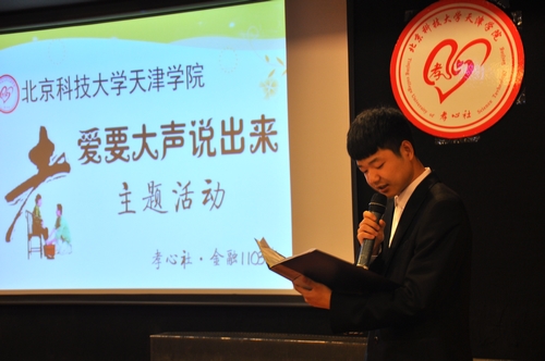 一段簡單的開場之后,孝心社張永康同學首先與大家分享了他對孝的理解。 “孝心,并非是長大后才有的責任,也并非是用金錢就能彌補”、“孝心其實很簡單,比如,為家里清掃一次房間;為母親倒一杯水;為父親捶一次背……”樸實的話語道出了他對孝的點滴體會。金融1103班班同學自己拍攝并制作的視頻記錄了他們對父母想說的話。孝心社劉曉通過自己的親身經歷告訴了大家“行孝不能等”這個道理,很多同學聽完之后都默默的擦起了眼淚。李翔同學演唱的《父親》也深深的打動了大家。部分同學的父母用電話錄音的方式表達了他們對于在遠方求學的同學們的掛念和祝福。全班同學和著鋼琴伴奏共同演唱了《燭光里的媽媽》,歌聲傳遞了同學們對爸爸媽媽的祝福。活動最后,同學們將自己對爸爸媽媽想要說的話寫在留言板上,一句句簡單的話表達了對父母真摯的愛。