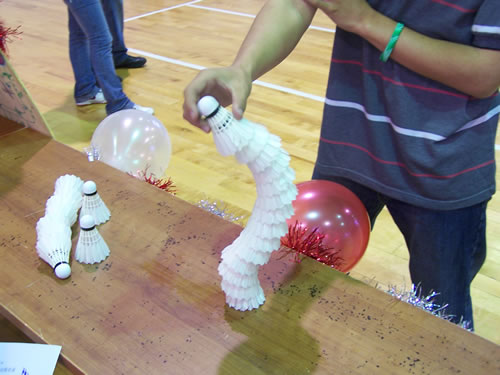 活動(dòng)分為兩個(gè)環(huán)節(jié)。第一個(gè)環(huán)節(jié)為競(jìng)技體育,以“擁抱青春,體驗(yàn)激情,貼近奧運(yùn),暢想未來”為主題。項(xiàng)目分為體育類和益智類,參與任何一項(xiàng)體育項(xiàng)目的獲勝者,在報(bào)名表上都會(huì)得到一個(gè)勝利標(biāo)識(shí),當(dāng)標(biāo)識(shí)累積到三個(gè)以上時(shí),就可以到兌獎(jiǎng)處兌換相應(yīng)的精美獎(jiǎng)品。學(xué)生會(huì)將根據(jù)最后收回的報(bào)名表評(píng)選出“校園吉尼斯記錄”保持者,并頒發(fā)校園吉尼斯記錄榮譽(yù)證書。比賽形式新穎獨(dú)特,如羽毛球中的掂球、定點(diǎn)擊球;乒乓球中的夾球、吸球;籃球中的遠(yuǎn)投、轉(zhuǎn)球等。這些項(xiàng)目看似簡(jiǎn)單,實(shí)則需要很多技巧。最受矚目的當(dāng)屬“三分投籃”的比賽了,同學(xué)們自己競(jìng)賽的同時(shí),還邀請(qǐng)?bào)w育老師趙文男表演遠(yuǎn)投技巧。趙老師的精湛技藝,讓在場(chǎng)同學(xué)們大飽眼福。與此同時(shí),“手動(dòng)創(chuàng)意”比賽則吸引到了眾多女生的關(guān)注,定時(shí)拼圖、DIY串珠、美甲等項(xiàng)目,讓心靈手巧的女生們擁有了展示的舞臺(tái)。