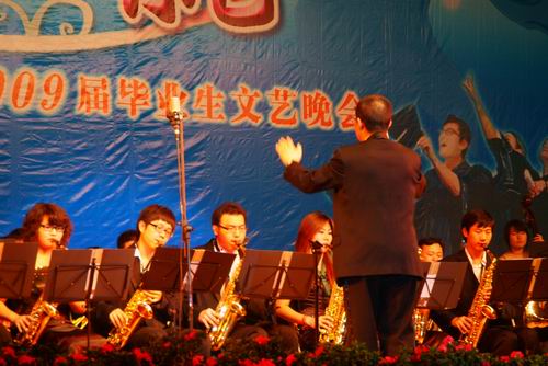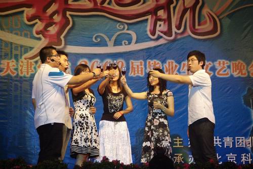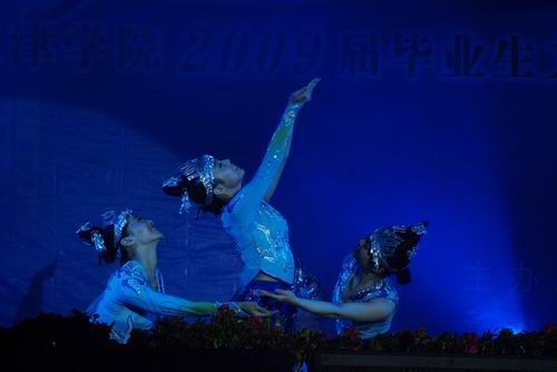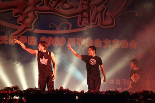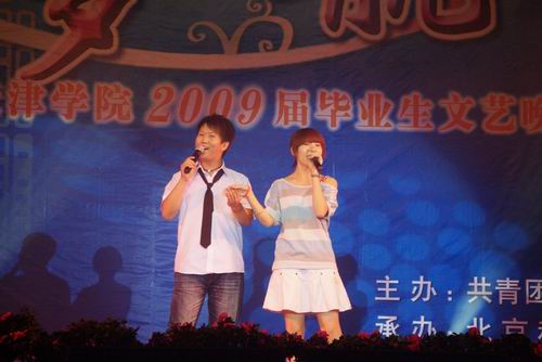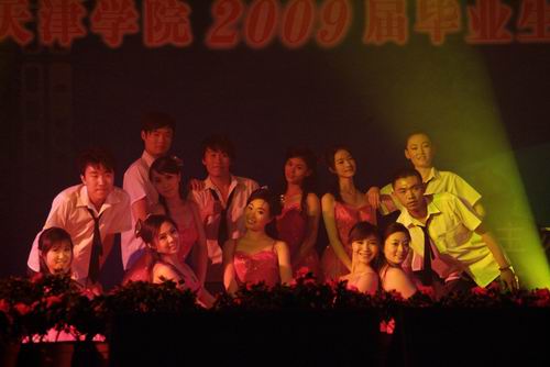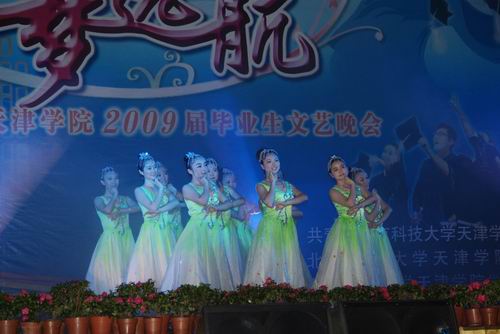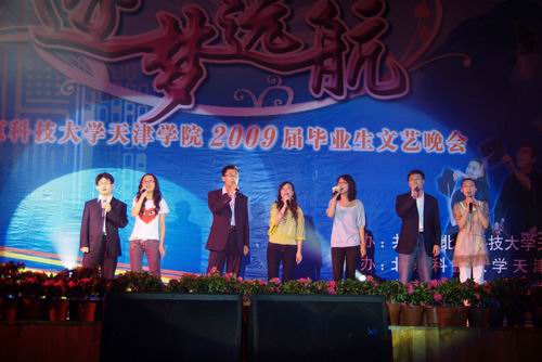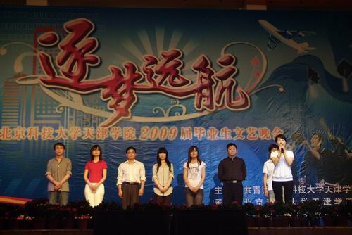 5月26日晚,“逐夢遠航”北京科技大學天津學院2009屆畢業生文藝晚會在體育館隆重上演。本次晚會由共青團北京科技大學天津學院委員會主辦、學生會承辦、學生藝術團協辦,北京科技大學黨委副書記張文明、北京科技大學天津學院院長郭景文、黨委書記王斌、副院長曹連東、財務總監肖祖剛、學院辦公室主任白亮、體育部主任吳鐵橋、實驗技術中心主任許學東、圖書館館長劉淑娥、基建后勤處處長王興元、學生處處長盛佳偉、團委書記葉振楠及各系黨總支書記出席了晚會,全院師生千余人到場觀看了晚會。