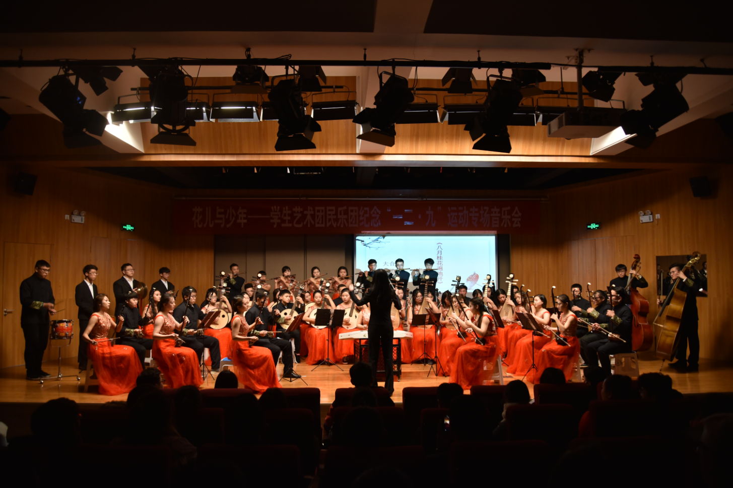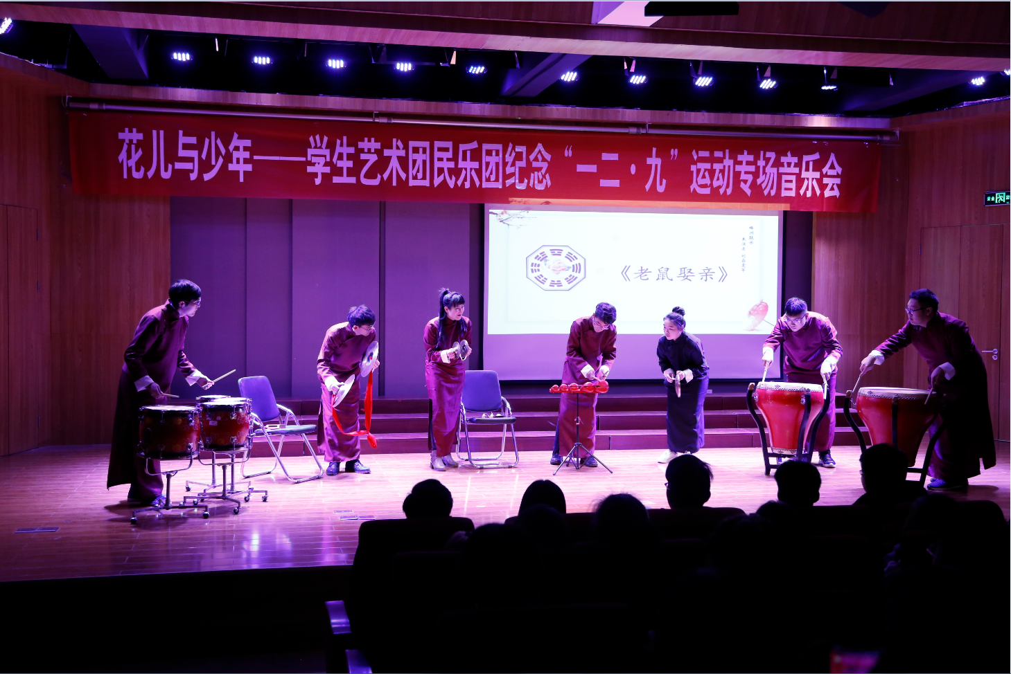 12月6日晚7點,由學(xué)院藝術(shù)教育中心主辦,學(xué)生藝術(shù)團民樂團承辦的“花兒與少年”----學(xué)生藝術(shù)團民樂團紀念一二.九運動專場音樂會在12教弘藝音樂廳隆重舉行。藝術(shù)系主任胡建華及藝術(shù)教育中心的師生共同觀賞了本場音樂會。