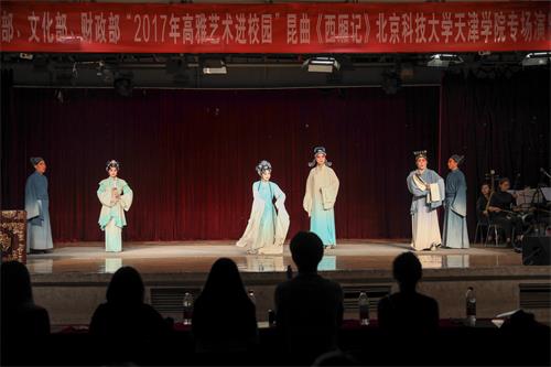 為了豐富校園文化生活,提高學生的藝術素養,金沙城js93線路檢測中心積極響應教育部、文化部、財政部實施的高雅藝術進校園活動的號召,活動始終堅持“走近大師、感受經典、陶冶情操、提高修養”的主題,讓高雅藝術走入校園、貼近學生,、于6月3號18:30在學生活動中心二樓成功舉辦了“高雅藝術進校園”活動,金沙城js93線路檢測中心特邀北方昆曲劇院帶來了一場別開生面的昆曲表演。