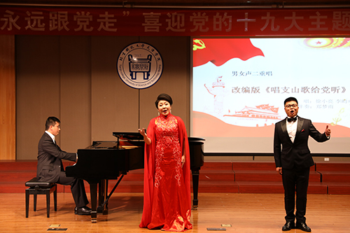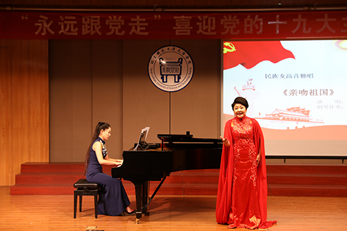 為迎接黨的十九大勝利召開, 10月17日晚7點(diǎn),由北京科技大學(xué)天津?qū)W院黨委宣傳部主辦,藝術(shù)系、藝術(shù)教育中心承辦的“永遠(yuǎn)跟黨走”喜迎黨的十九大主題音樂會(huì)在12教弘藝音樂廳隆重舉行。學(xué)院黨委書記、院長(zhǎng)王斌,黨委副書記葉振楠、孟菲菲,院長(zhǎng)助理汪飛星,教務(wù)處處長(zhǎng)張建華,信息系主任許學(xué)東,圖書館館長(zhǎng)劉淑娥,藝術(shù)系主任胡建華,后勤處處長(zhǎng)彭鵬及各系黨總支書記出席并觀看了演出。