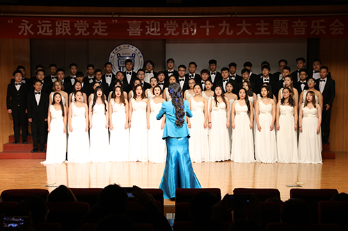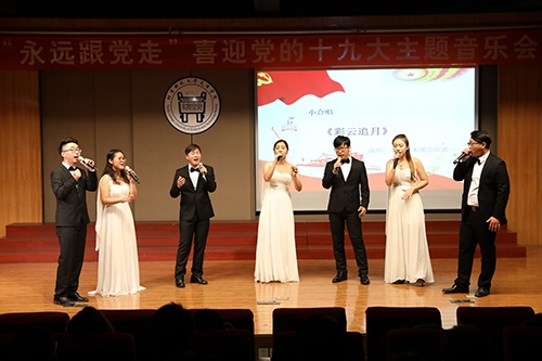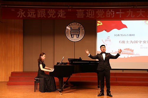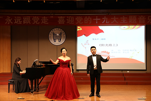中國(guó)共產(chǎn)黨第十九次全國(guó)代表大會(huì)即將在京召開,全院師生以飽滿的熱情、奮發(fā)的精神,為迎接黨的十九大勝利召開而高唱?jiǎng)P歌!音樂會(huì)在《我和我的祖國(guó)》管弦樂合奏中拉開了帷幕。《親吻祖國(guó)》、《紅旗頌》、《唱支山歌給黨聽》、《我愛你中國(guó)》等一首首耳熟能詳?shù)臉非溽嘣谝魳窂d內(nèi),久久余音繞梁。整場(chǎng)音樂會(huì)以獨(dú)唱、重唱、合唱、獨(dú)奏、雙鋼琴演奏、合奏等多種藝術(shù)表演形式,選取廣大聽眾膾炙人口的經(jīng)典音樂作品,以回顧黨的光輝歷程,謳歌祖國(guó)的飛躍發(fā)展,贊美祖國(guó)河山的浪漫時(shí)尚,展現(xiàn)了一幅把美好的現(xiàn)實(shí)與美好的憧憬相融一體的優(yōu)美畫卷,演繹成一部我們黨、我們祖國(guó)、我們家園的歷史回音壁。這些所喜聞樂見的音樂作品帶給在場(chǎng)觀眾感情的波瀾和心靈的震顫。一曲曲慷慨激昂的樂曲贏得全場(chǎng)觀眾的熱烈的掌聲!