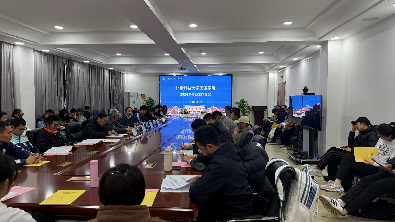 12月25日,北京科技大學天津學院2024年體委工作會議在12教300會議室順利召開。此次會議旨在總結今年體育工作經驗,規劃2025年體育工作方向,進一步推動校園體育事業蓬勃發展,學院黨委副書記郭雅娟、體育部主任吳鐵橋、副主任劉傳海,體育部各教研室主任,全體教師、各院系分團委書記、團委相關部門負責人出席本次會議,會議由團委書記周少華主持。