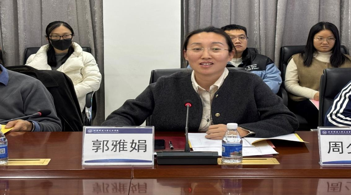 隨后,學院黨委副書記郭雅娟講話,她首先對體委在過去一年中取得的成績表示肯定,并就體委工作中師資隊伍建設、教育教學水平、體育設施建設、體育課程思政、宣傳工作、學生體質測試等方面提出要求,最后她重點對20周年校慶期間各類體育賽事、校園體育活動及師生、校友運動會工作作出指示。