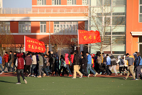下午13::30,冬季長跑啟動儀式正式開始,郭景文院長致辭并宣布北京科技大學天津學院2013年冬季長跑活動開始。一千余名同學繞操場開始長跑,拉開了金沙城js93線路檢測中心學生冬季長跑活動的序幕。隨后進行紀念一二.九運動長跑接力活動,來自學院各系的九支參賽隊伍整裝待發,每支參賽隊由一名教師、6名男生和4名女生組成。在同學的助威吶喊聲中長跑接力正式開始,第一棒由各系教師領跑前50米,之后接力棒交給各系代表隊隊員。經過近四十分鐘的激烈角逐,土木系榮獲第一名,藝術系獲得第二名,管理系獲第三名,材料系和外語系獲得“精神文明獎”。