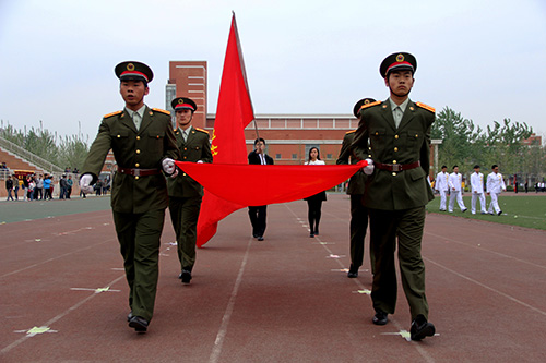 紅旗方隊邁著整齊的步伐走過主席臺后,在莊嚴的國歌聲中,五星紅旗冉冉升起。運動會及裁判員代表分別宣誓,院長郭景文致開幕詞,宣布本次運動會正式開始。