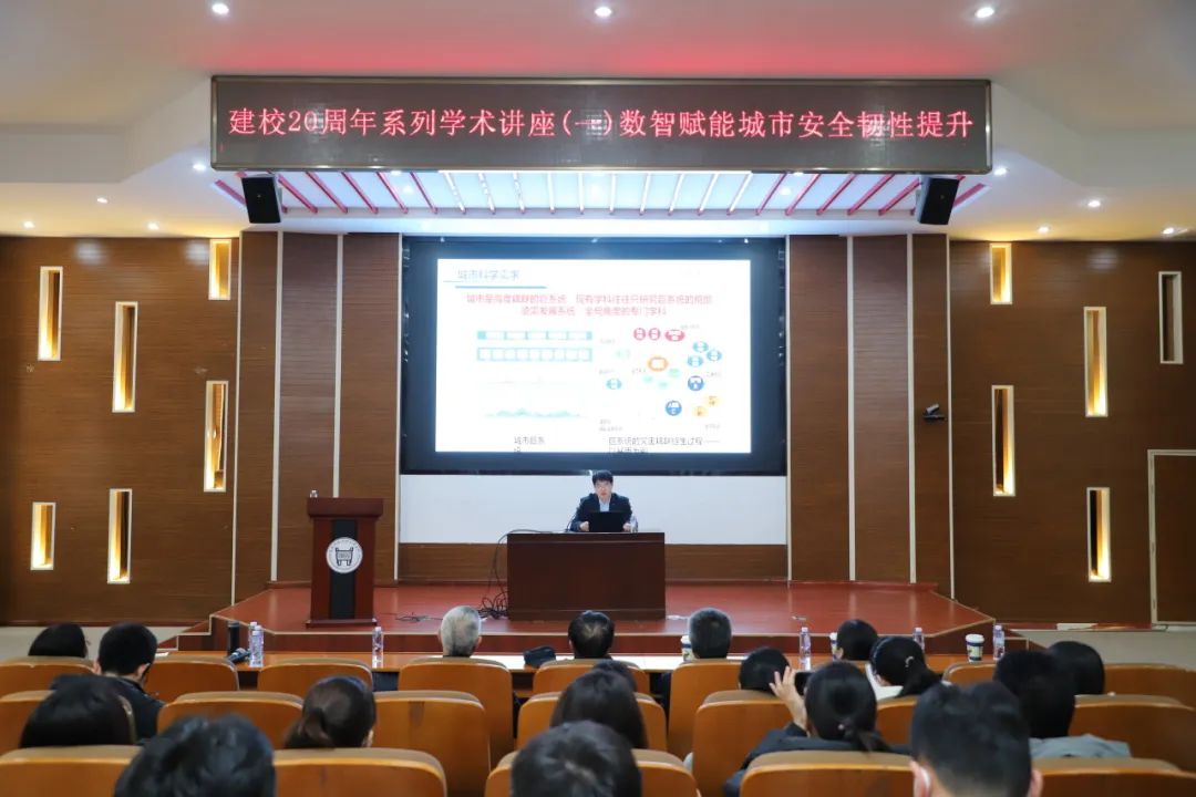 本次學術講座是我校20周年校慶的開篇之作,特別邀請到北京科技大學未來城市學院創院院長、博士生導師、清華大學博士、國家級青年人才許鎮教授。學術報告的主題是“數智賦能城市安全韌性提升”,報告旨在將數字化、信息化和人工智能等前沿技術融入傳統的土木工程領域,賦能城市安全韌性提升,對進一步落實金沙城js93線路檢測中心教育數字化轉型,助力師生提升數字化、智能化素養與應用能力具有積極推動作用。