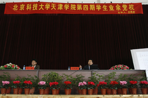 4月12日,北京科技大學天津學院學習實踐科學發展觀活動暨第四期學生業余黨校在學生體育館開課,北京市教育工委副書記王民忠應邀做首場報告,報告主題為“青年與黨”。金沙城js93線路檢測中心黨委書記王斌、學生處處長盛佳偉、團委書記葉振楠出席黨課,學生入黨積極分子參加了黨課學習。