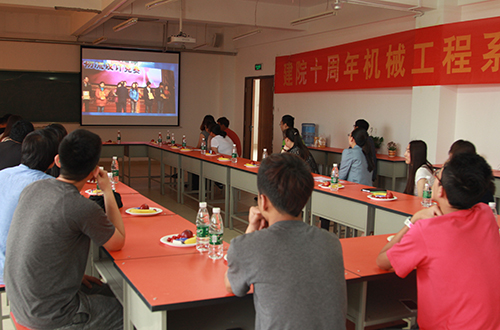 參觀過后我系在12教4層多媒體教室一同開展了主題為“建院十周年機械工程系校友座談會”,會上校友代表紛紛發(fā)言,訴說著離校后的人生經歷,并將他們的人生經驗和處世之道傳授給后輩,將“不甘于后”的精神發(fā)揚光大。之后觀看了機械系十年來一同走過的時光短片。他們勸誡年輕學子“珍惜當下、包容萬物、學會感恩”,要把每一個能把握的機會轉化為未來成功的籌碼,并表達了對母校深深地祝福。