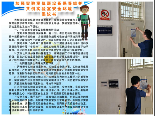 3月下旬,實驗室管理中心向全院實驗系統發出“共創實驗室安全環境倡議”,設計倡議書宣傳單向所有實驗(實訓)室負責人及師生發放,同時印刷紙質版倡議書張貼于學院所有實驗(實訓)室,號召全體實驗室師生廣泛開展實驗室設備維修維護活動、共同營造安全有序的實驗環境。