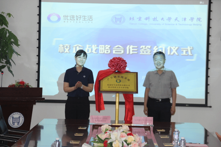 好生活科技集團(tuán)人力行政總監(jiān)李薇和學(xué)院黨委書記丁煦生共同為產(chǎn)學(xué)研實(shí)踐基地揭牌