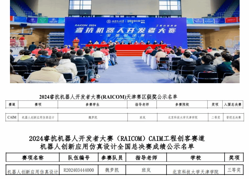 近日,由工業和信息化部人才交流中心主辦的2024睿抗機器人開發者大賽(RAICOM)全國總決賽落下帷幕,我校智能制造學院機械工程(機器人應用)專業學生魏夢凱在班嵐老師...