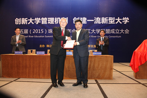 2015年1月11日上午珠江大學聯盟成立大會隆重召開。香港科技大學創校校長吳家瑋,珠江集團創始人、合生創展集團董事局主席朱孟依,北京科技大學黨委副書記張文明,珠江集團董事、珠江教育集團董事長王爭放,中山大學南方學院、天津財經大學珠江學院、北京科技大學天津學院三所獨立學院董事會成員、領導班子成員出席會議,會議由北京科技大學天津學院黨委書記王斌主持