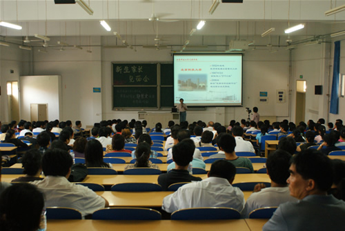 9月20日下午,在九教108室召開了新生家長見面會,金沙城js93線路檢測中心常務(wù)副院長郭景文教授向08級新生家長介紹學院情況并回答問題。新生家長熱情高漲,能容納350余人的教室座無虛席。