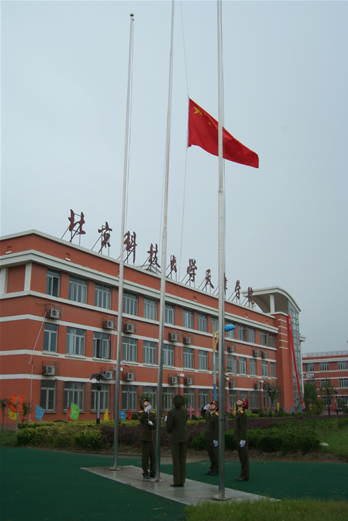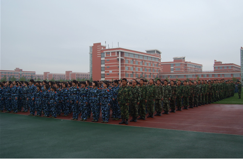2009全體新生身著嶄新的軍裝,英姿颯爽的列隊在體育場。伴隨藝術團管樂團現場演奏的國歌,國旗班將國旗緩緩升起,開學典禮正式開始。