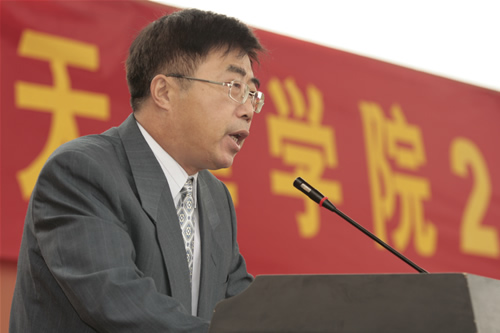 天津學院院長郭景文發表了熱情洋溢的講話。他首先對來自全國各地的2009級新生表示衷心的祝賀和熱烈的歡迎。郭院長希望全體新生要做好三件事情:一是學習知識,希望同學們在學校期間,勤奮學習,刻苦鉆研,、勇攀、高峰;二是學習做人,希望同學們樹立正確的人生觀、價值觀,凈化心靈,完善品德,做有理想、有責任感、有正義感、有誠信、懂得感恩的人;三是學會思考,在學習和做人的過程中,凡事要認真思考、積極思考、主動思考,要學會深度地思考、獨立地思考、創造性地思考,努力使自己成為一個富有內涵和開拓創新的人。