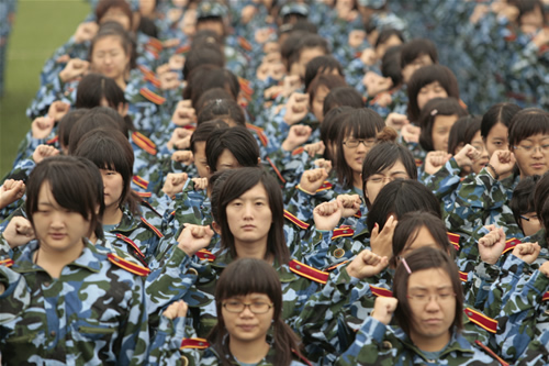 開學典禮結束后,歷時兩周的2009新生軍訓正式開始。