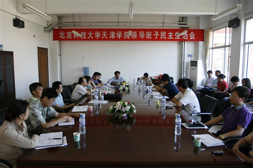 北京科技大學天津學院聯系校領導、北京科技大學黨委副書記張文明同志充分肯定了此次民主生活會具有的實際意義,指出每位學院領導誠懇的發言表明了大家為天津學院發展傾注的心血,認為會議主題鮮明,效果好,統一了思想,增強了黨性,起到了推動學院科學發展的作用。張書記指出,現階段學院學習實踐科學發展觀活動的第一要務是明確目標定位,在服務、管理、教學、師資等方面進一步推進發展,他希望學院領導班子針對學院存在的目標、體制、人才等根本問題,探索良好發展機制,推動天津學院又好又快發展。