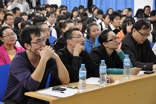 本次班級答辯分為班級陳述和評委提問兩部分內容。在7分鐘的班級陳述過程中,各個班級派出1-4名學生代表向評委和同學們介紹本班情況,以別出心裁的方式向觀眾和評委展示了各班在思想建設、學習成績、學生工作以及日常生活等方面所取得的各項驕人成績。展示結束后,評委針對各班級的特色進行提問并評分。