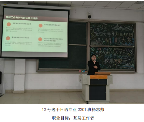 2024年12月4日,“筑夢青春志在四方,規(guī)劃啟航職引未來”第二屆全國大學(xué)生職業(yè)規(guī)劃大賽校賽決賽暨北京科技大學(xué)天津?qū)W院第十一屆職業(yè)生涯規(guī)劃大賽在9教109教室隆重舉行,12名決賽選手代表10個(gè)院系登上決賽舞臺(tái)。
