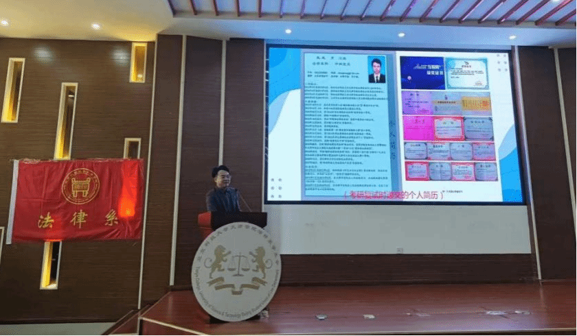 2017屆法學專業畢業生孔龍從自己的校園成長之路講起,感嘆再次站上學術報告廳演講臺的心情變化。之后與學弟學妹們分享了自己的學生干部、考研備考、學術科研、律所工作和戀愛家庭的經歷,用自己畢業后學習、生活、工作的經歷來鼓勵同學們堅守理想、錘煉本領、發揮所長、不斷奮進、永不言敗,讓人不禁感嘆努力的人自帶光芒。