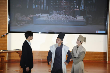 戲劇社精心改編的《典籍里的中國(guó)》更是一幅流動(dòng)的文化長(zhǎng)卷。演員們以精湛的表演推開千年時(shí)空之門,讓《孫子兵法》的謀略智慧、《尚書》的治國(guó)之道、《徐霞客游記》的山水情懷在舞臺(tái)上鮮活再現(xiàn),讓沉睡的文字喚醒為跳動(dòng)的文化血脈,泛黃的典籍化作照亮天津?qū)W院的精神燈塔。