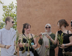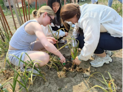 5月29日下午,天津商業大學的20名海外留學生在我校外國語學院老師和學生的陪同下走進勞動實踐基地,了解二十四節氣的起源與基地發展建設歷程,體驗大蒜采收和爆米花制作的樂趣,在農耕實踐中觸摸中華文化的脈搏。