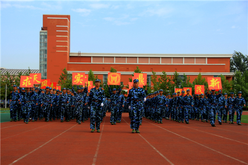 9月15日上午9時,學院迎來了2013級學生軍訓結業典禮。全院1700余名新生整齊列隊,匯報兩周來的軍訓成果。迎校旗,奏響激昂的解放軍進行曲,六個分列式方隊的隊員邁著整齊的步伐,昂首挺胸,氣勢高昂地走過主席臺,用嘹亮的口號向領導匯報兩周的軍訓所得。隨后進行的軍訓匯報科目表演將結業典禮推向了高潮。氣勢磅礴的擒敵拳方隊,整齊劃一的單個軍人隊列動作,氣貫長虹的教官武術表演,嫻熟規范的女生隊列方隊、“感恩”“責任”的拼圖組字、威武有力的教官格斗動作,每一項表演都贏得全場熱烈掌聲和喝彩,同學們用精彩的表現展示了自己在軍訓中的鍛煉成果。
