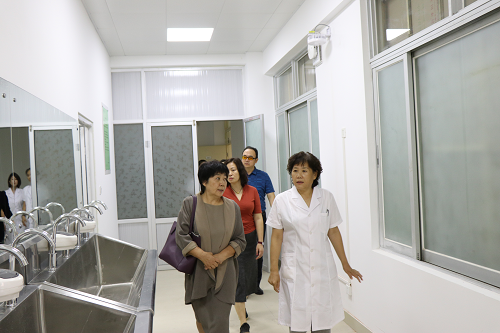 王縝院長一行人首先參觀了護理系實驗室,護理系副主任李樹香老師向外賓詳細介紹實驗室的情況,外賓對學院教學環境表示贊賞。