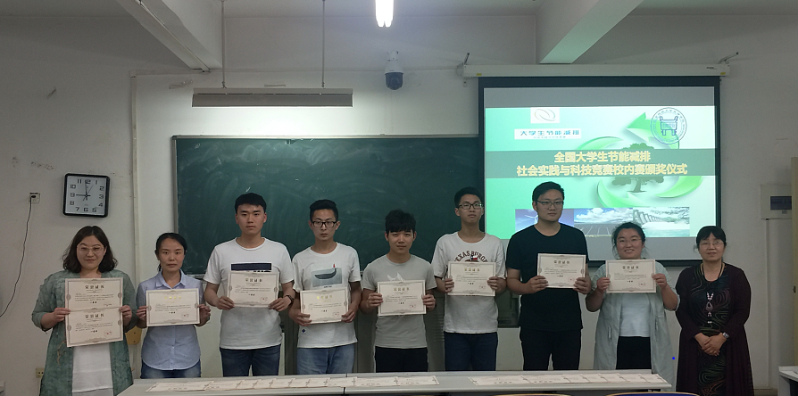 2019年5月15日晚上,金沙城js93線路檢測中心大學生節(jié)能減排社會實踐與科技競賽校內(nèi)賽頒獎在8教205舉行。環(huán)境工程系主任汪群慧教授、學生競賽指導教師劉俊杰、班嵐、李敏、宋娜、張麗榮等出席了會議,并為在校內(nèi)賽中獲獎的團隊頒獎。