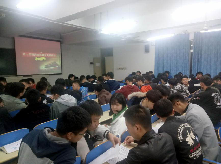 11月17日晚上,機械工程系在9教201開展了第十四期初級黨課的黨課活動,機械系分團委書記、2018級輔導員張軍老師主持召開活動,大一新生團員參加了此次活動。