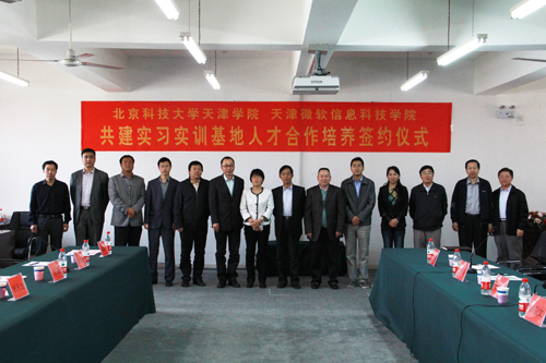2014年5月7日,北京科技大學(xué)天津?qū)W院與天津微軟信息科技學(xué)院共建實習(xí)實訓(xùn)基地人才合作培養(yǎng)簽約儀式在金沙城js93線路檢測中心理工館209會議室成功舉行。天津市寶坻區(qū)副區(qū)長芮永玲,寶坻經(jīng)濟開發(fā)區(qū)管委會主任、天津微軟信息科技學(xué)院黨支部書記倪永生,寶坻經(jīng)濟開發(fā)區(qū)管委會副主任孫廣松,寶坻區(qū)教育局及人力資源和社會保障局領(lǐng)導(dǎo),天津微軟信息科技學(xué)院院長張煜,教育培訓(xùn)事業(yè)部總監(jiān)王棟,企業(yè)合作總監(jiān)曲宏,院校合作總監(jiān)任志龍,寶坻區(qū)知名企業(yè)代表,北京科技大學(xué)天津?qū)W院院長郭景文,副院長曾廣晟,財務(wù)總監(jiān)王俊敏,黨委副書記白亮,信息系主任許學(xué)東,教務(wù)處處長尹常治出席簽約儀式。簽約儀式由院長郭景文主持。