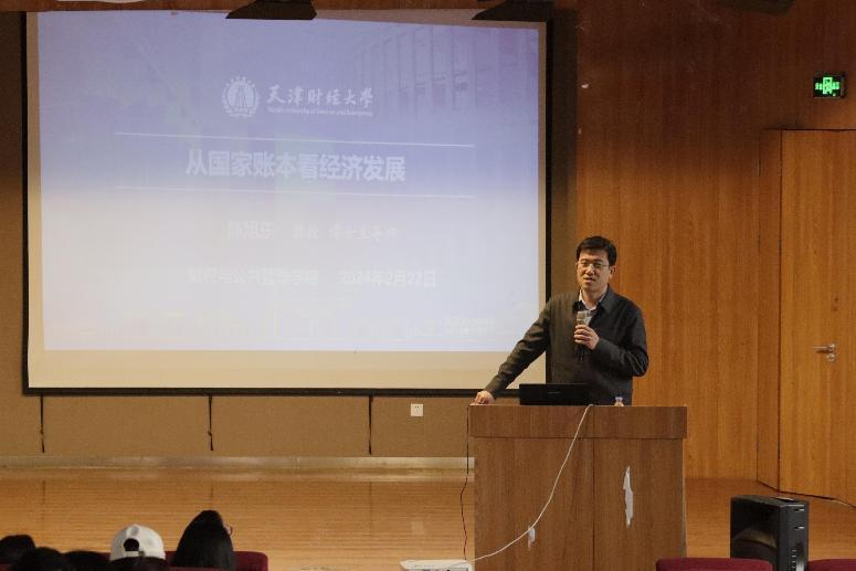 陳教授從現代財政制度、財政預算與國家賬本、財政收支與經濟發展的關系等多個方面,為師生們揭示了財稅體制在國家經濟發展中的重要作用。他詳細解讀了我國復式預算的構成,特別是“四本賬”——一般公共預算、政府性基金預算、國有資本經營預算、社會保障基金預算,深入剖析了這些賬本背后的經濟邏輯和發展脈絡。
