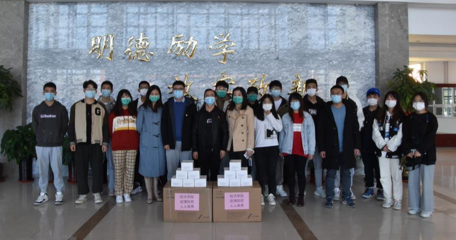 經(jīng)濟(jì)學(xué)院老師和輔導(dǎo)員為學(xué)生發(fā)放口罩