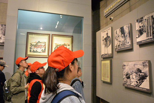 “復興之路”基本陳列里的1200多件(套)珍貴文物、870多張歷史照片以及逼真的戰斗場面吸引了在場的同學們,他們時而駐足觀看拍照留念,時而低頭思考記錄感想,被帶回了近代以來跌宕起伏、波瀾壯闊的難忘歲月。