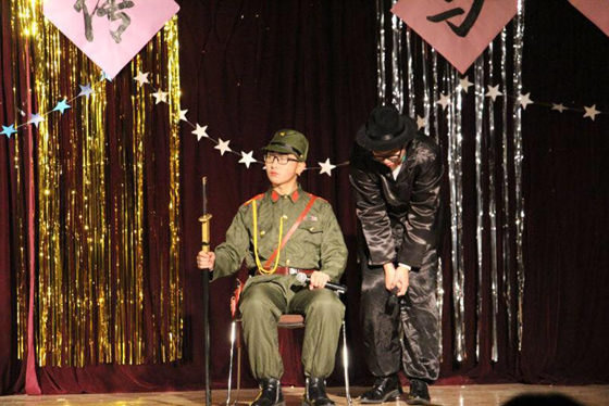 最后作為壓軸節目的話劇《血火雄心》,由經濟系分團委、學生會奉上,回首過去,八十載征程漫漫;縱觀今朝,八十載紅旗飄飄;今天我們熱情澎湃,縱情揮灑書生意氣;明天我們不忘初心,豪情萬丈繼續前進。