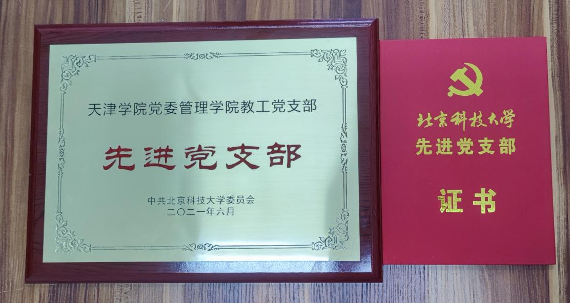 黨的百年華誕即將到來之際,2021年6月30日,北京科技大學隆重召開“兩優一先”表彰大會,北京科技大學天津學院管理學院教工黨支部榮獲“先進黨支部”光榮稱號。