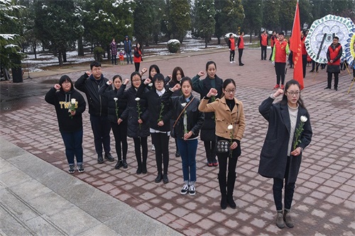 5日上午9點,同學們懷著沉重的心情,來到烈士陵園向烈士敬獻了花圈;隨后學生黨員代表進行了“緬懷先烈歷史 爭當時代新青年”主題的宣講,宣講使同學們了解先烈歷史,銘記革命傳統,鼓勵大家學習革命先烈的崇高精神,宣講后全體默哀,寄托哀思。全體黨員面對烈士紀念碑重溫入黨誓詞,表達他們的入黨決心,為黨和國家繁榮富強而奮斗的意志以及為祖國偉大復興鞠躬盡瘁的信念。