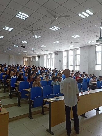 何教授用很幽默的語言描述他的一次與死亡擦肩而過的經歷,贏得了學生發自內心的陣陣掌聲。
