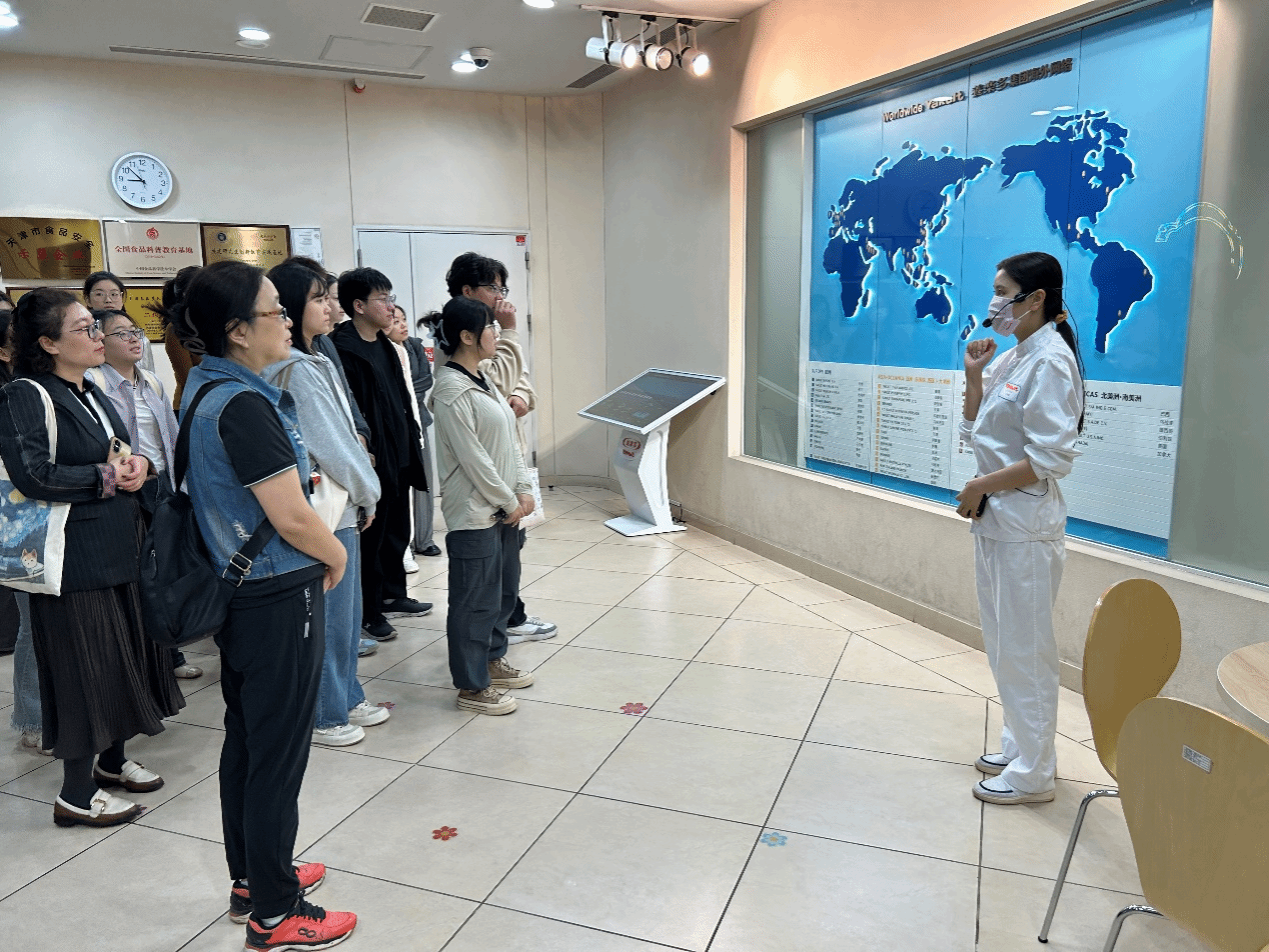 此次赴企業(yè)參觀,大家首先在工作人員的引領下參觀了養(yǎng)樂多企業(yè)和產品介紹展廳,隨后師生觀看了視頻介紹并與工作人員進行了互動交流,最后沿著培養(yǎng)室、品質管理室、成形室、充填室和包裝室等逐一進行了生產線觀摩。
