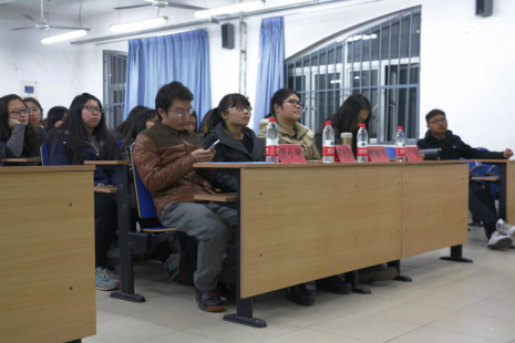 自由提問環節,同學們就考試流程,備考階段所需的準備工作、考試做題具體技巧等方面提出自己的疑問。各位學姐學長們也做了詳細的講解和說明。同時他們也鼓勵同學們在備考時一定要放平心態,充滿信心,合理的安排時間并預祝大家在專四考試中取得優異成績。